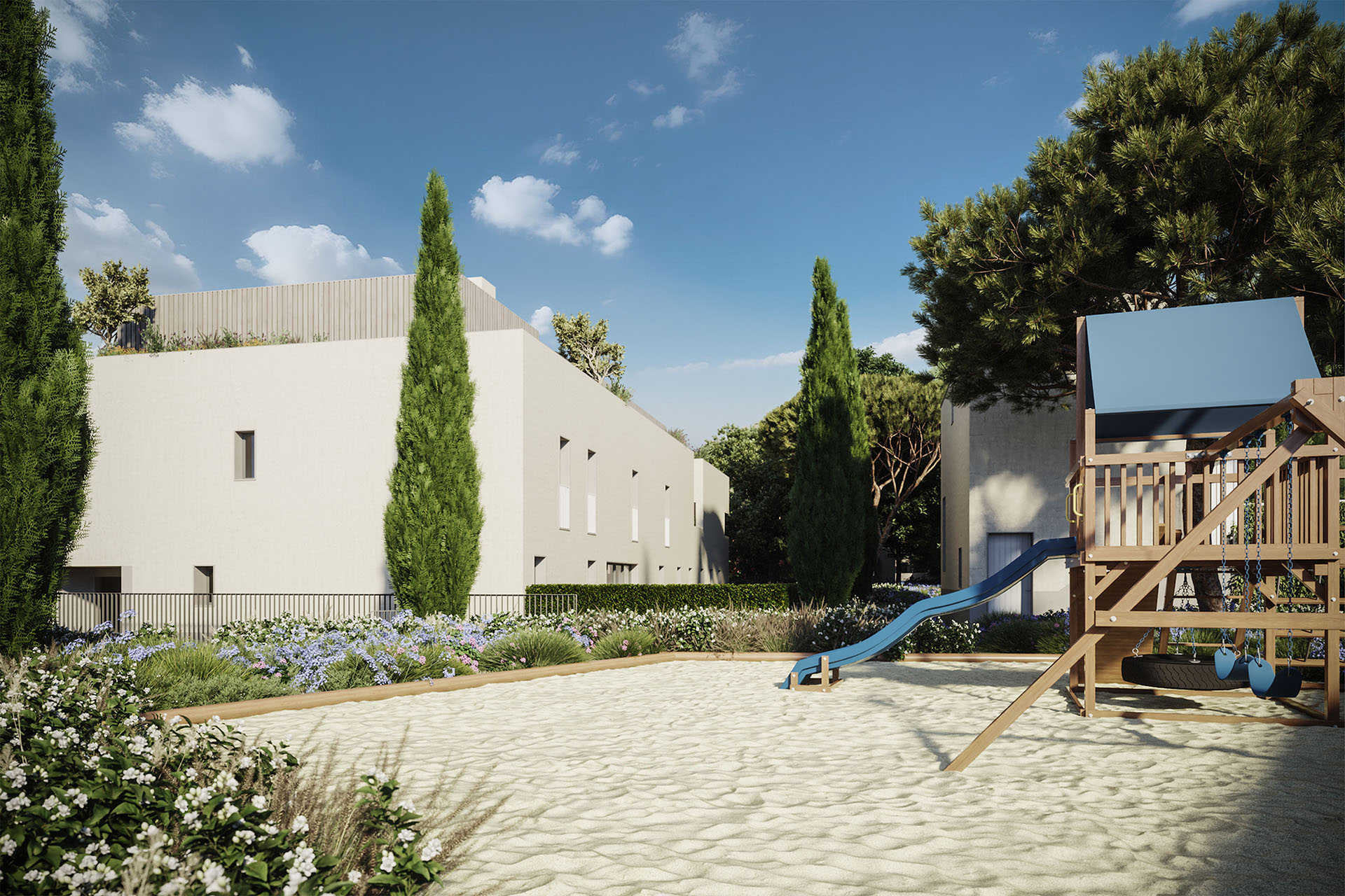 Aqui, cada detalhe foi pensado para proporcionar uma experiência de vida plena, onde o conforto, a qualidade e a funcionalidade se unem numa envolvência única, rodeada de espaços verdes.