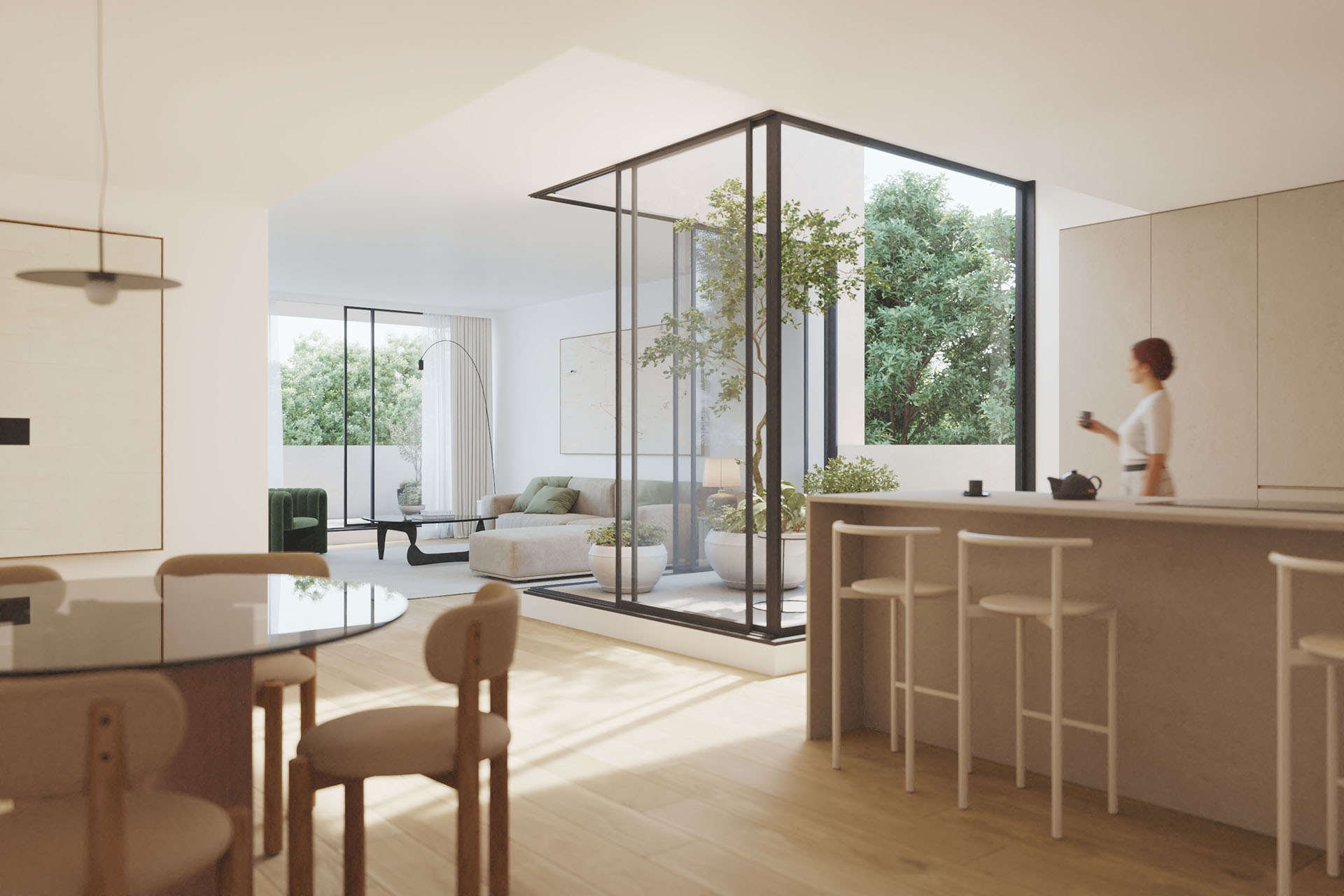 Com tipologias T1 a T4, os apartamentos do Porto Gardens combinam design moderno, luz natural abundante e materiais de alta qualidade. As áreas são generosas, com varandas e terraços pensados para que o exterior faça parte da sua casa.